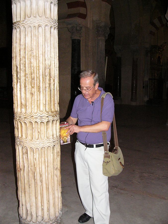 あれはガイドさんが説明しているところ。丸い柱の石は、とても高価な雪花石膏せっかせっこう(アラバスター)という石なので、大理石と違って光線で透き通るんですって。